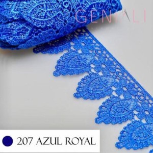 Renda Guipir Azul Royal com acabamento impecável, ideal para aplicações em roupas finas, artesanato e decoração. Perfeita para quem busca sofisticação.